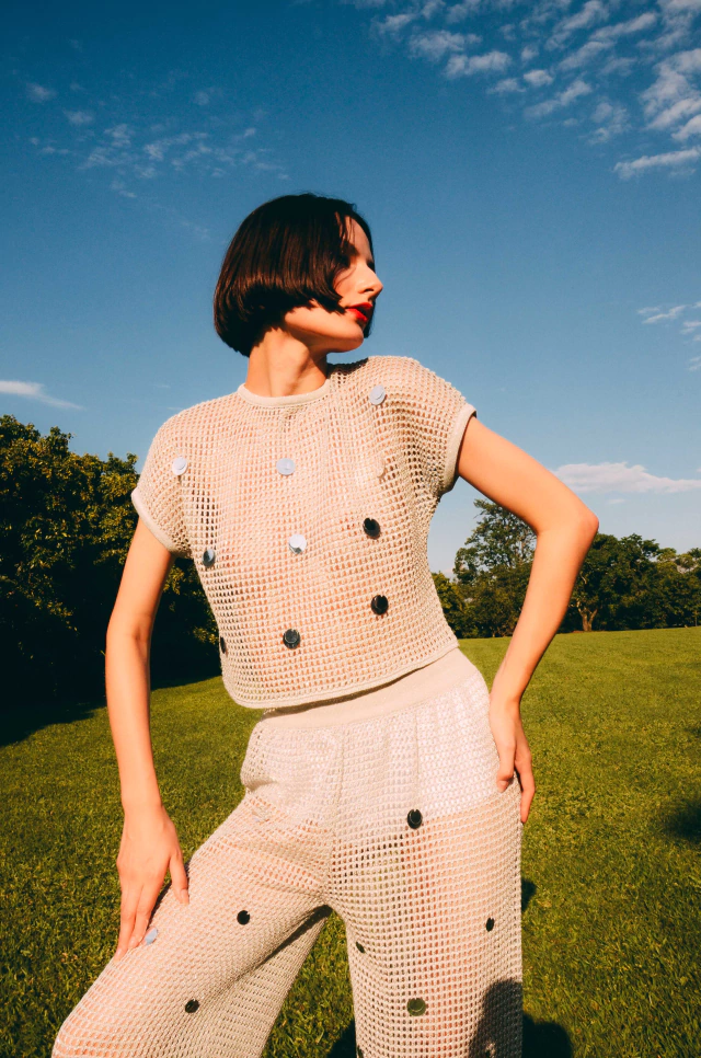 Cool & chic. Blusa de tricot, com ponto mais aberto, ideal para o verão. Tem manga curta e comprimento cropped.