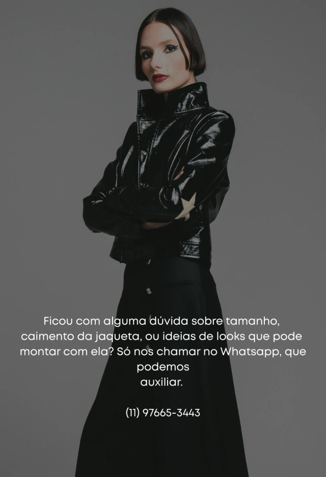 A peça best seller da Acarolac! Jaqueta confeccionada em vinil craquelado, revestido em poliuretano., forrada em crepe leve e confortável. Possui modelagem mais justa e abertura por botões de pressão. As estrelas bordadas nos cotovelos deixam a peça ainda mais autêntica!